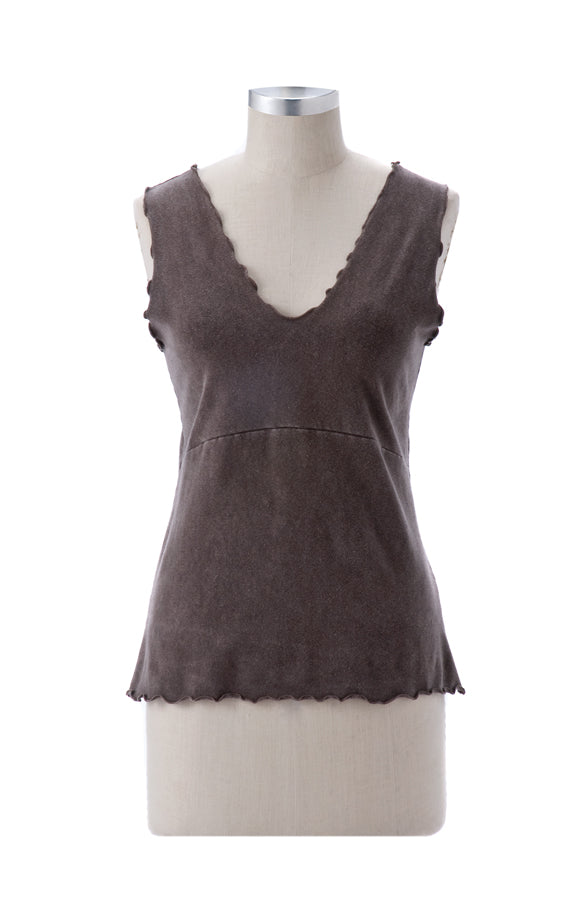 Earth Creations Sumptuous Tank Top. All hem edges & decorative seaming have a serged ruffle finish. Moonstone, 90% Organic Cotton, 10% Lycra, Clay Dyed