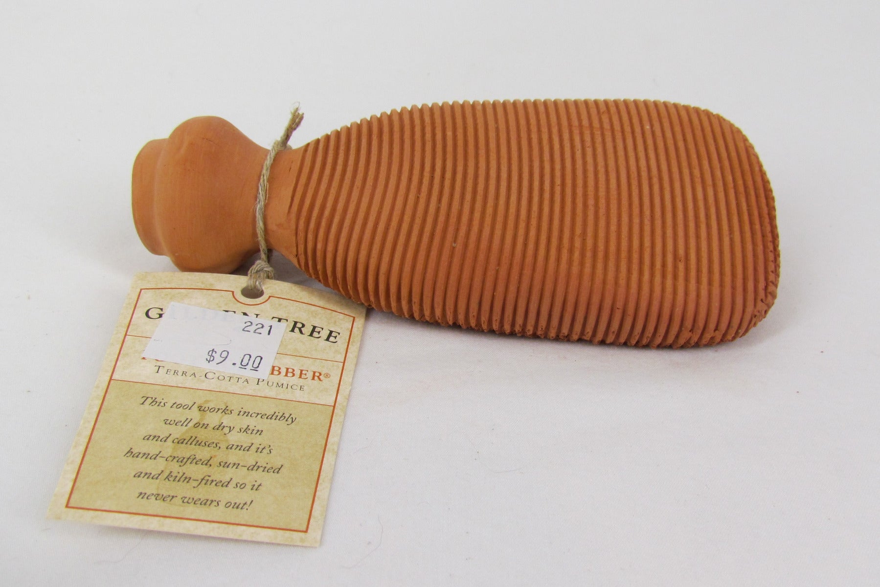 Hand-formed by artisan women in Pakistan, Gilden Tree's Foot Scrubber is made of terra-cotta, sun-dried and kiln-fired so it won't wear out, disintegrate or get moldy like other pumice stones do.