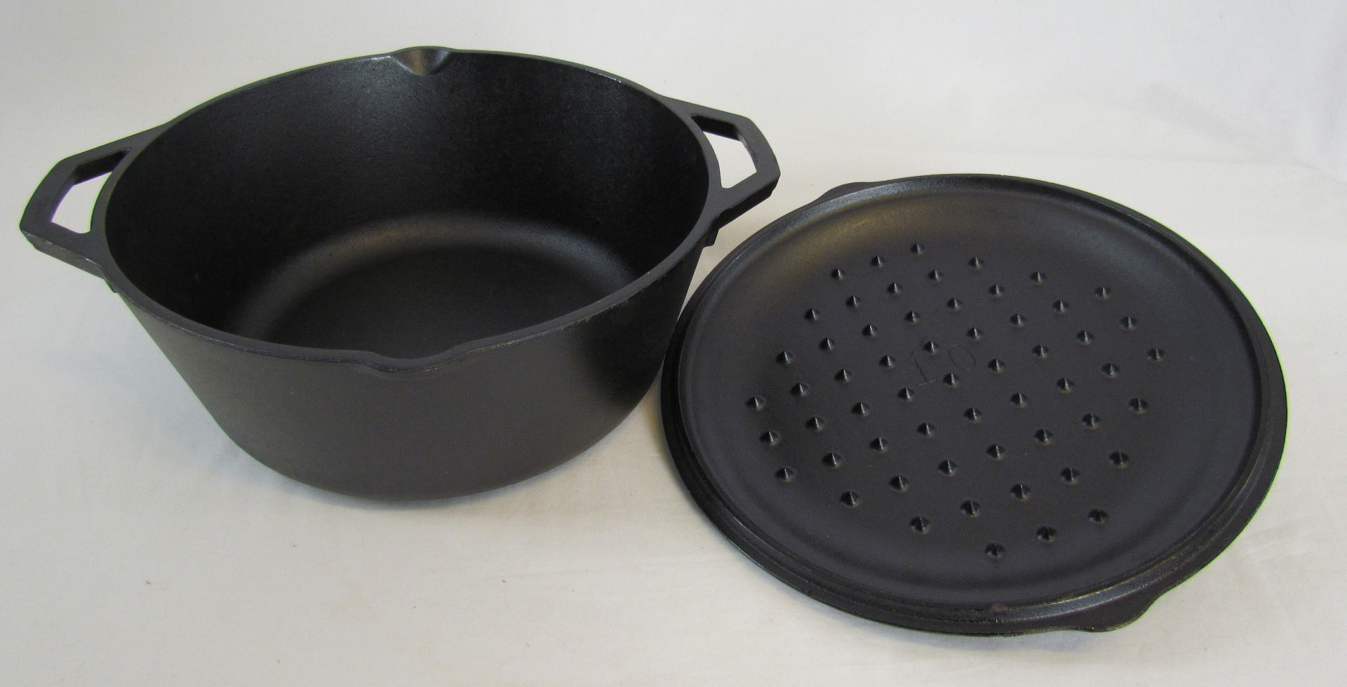 The deep pot features dual handles to make it easy to pour or move the pot, even when full; and dual spouts for pouring. Excellent for baking large meals & casseroles, breads, cobblers & cakes. Also for stove top stews, fry breads & preparing hearty meals. Great for induction cooktops.