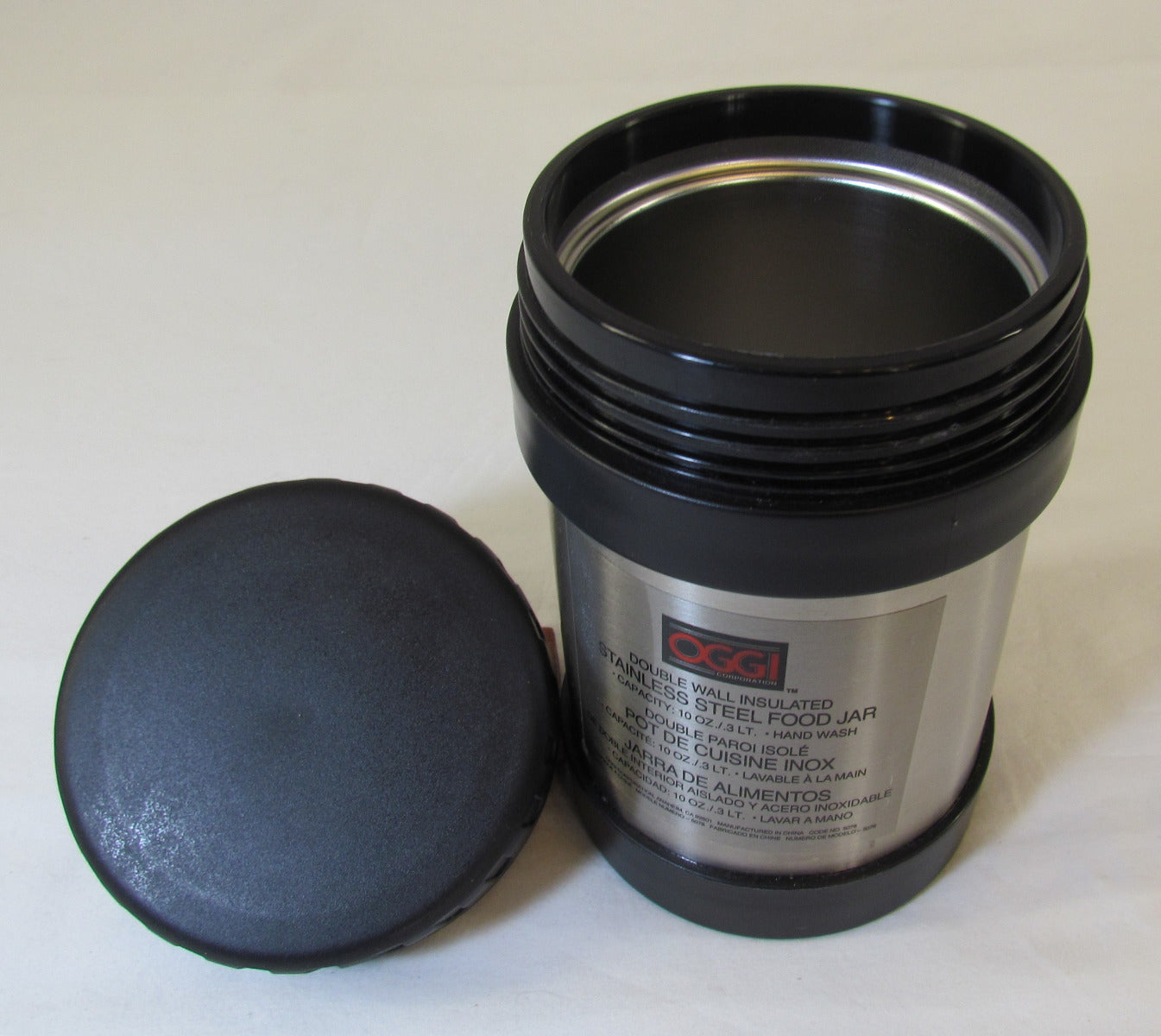 Great for soups or lunch leftovers, OGGI's Stainless Steel Wide Mouthed Food Jar is double wall insulated, holds 10 ounces and has tight fitting, silicone gasketed, screw-on ribbed lid for easy grip.