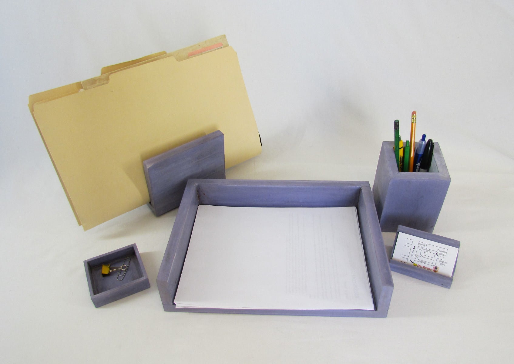 Get organized with Phat Frames Desk Set, handsomely made from salvaged wood and stained with Smokey Purple stain at UNITY Youth Center in Roswell, New Mexico.