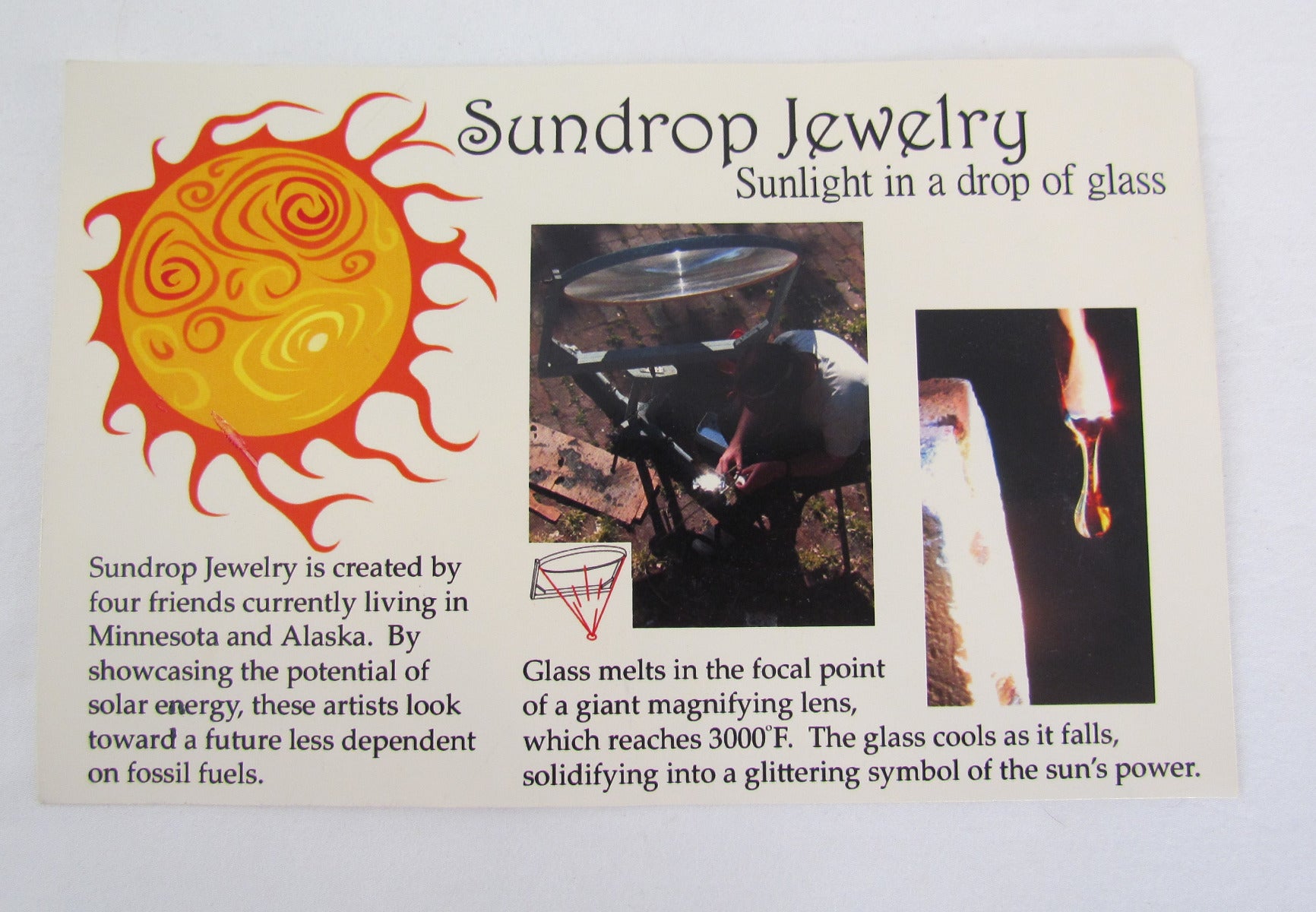 Sundrop Jewelry showcases the amazing potential of solar energy, looking toward a future less dependant on fossil fuels. They focus sunlight with a giant magnifying lens and melt glass, creating unique, handcrafted jewelry. The intense heat melts not only glass, but metal and rock!