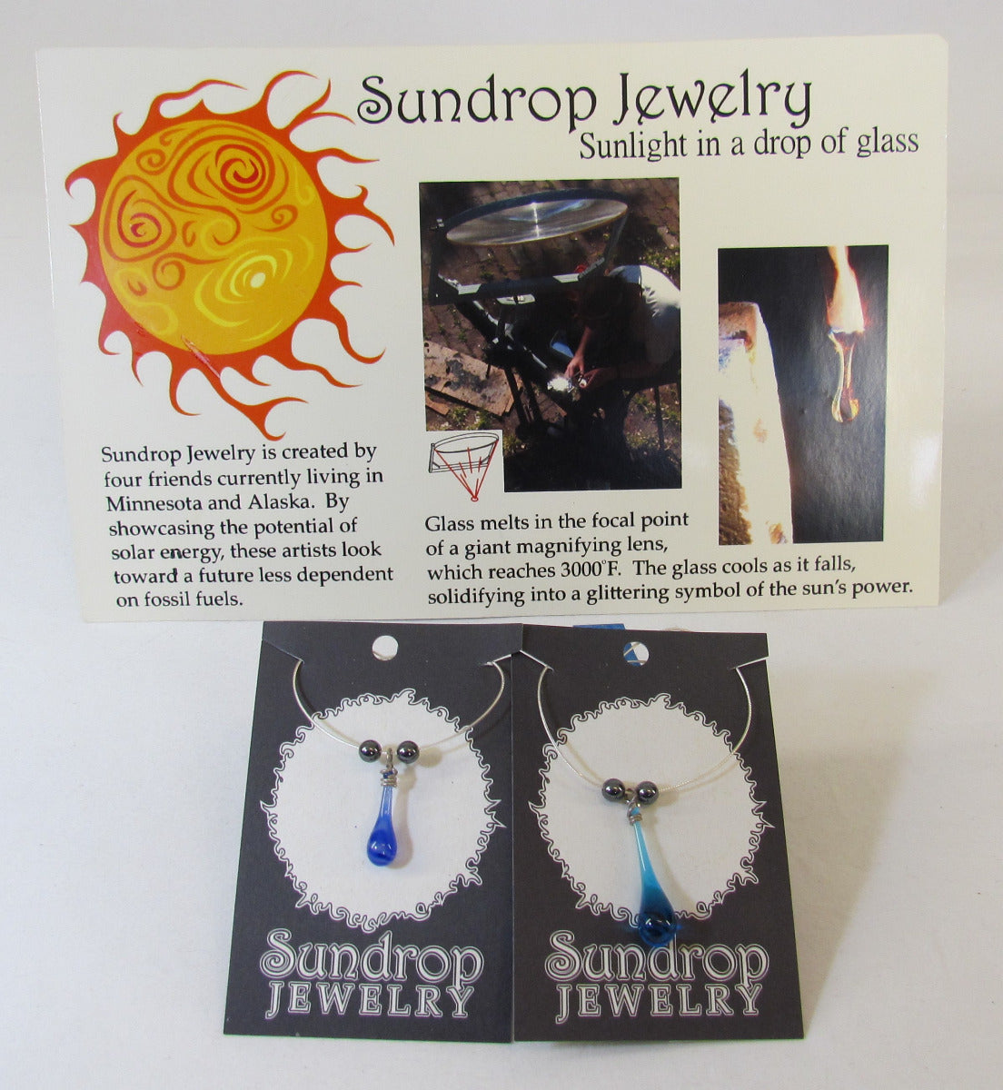 Sundrops are made by focusing sunlight with a giant magnifying lens and melting glass into drops creating unique, handcrafted jewelry.