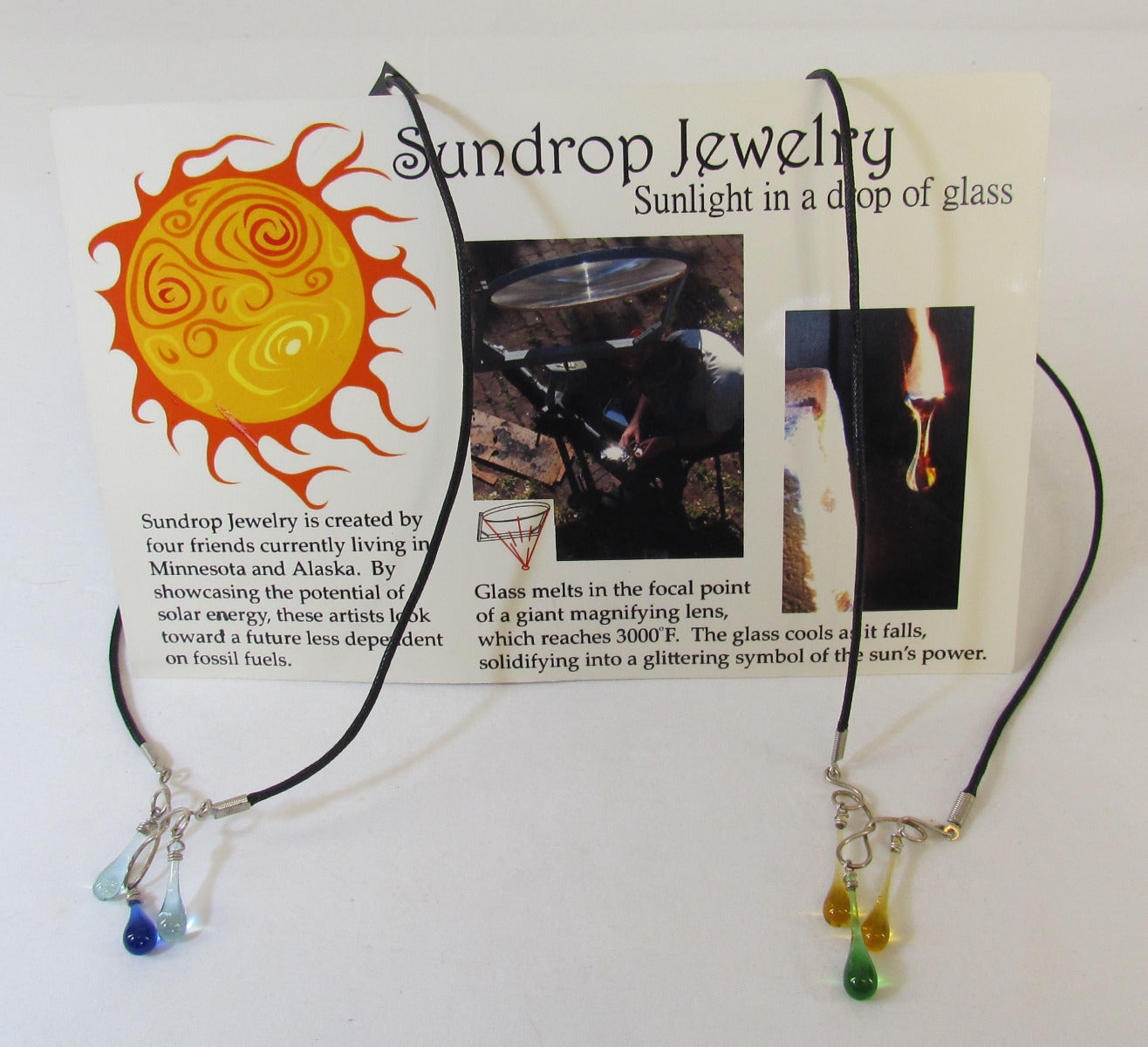 Sundrop Jewelry showcases the amazing potential of solar energy, looking toward a future less dependant on fossil fuels. They focus sunlight with a giant magnifying lens and melt glass, creating unique, handcrafted jewelry.